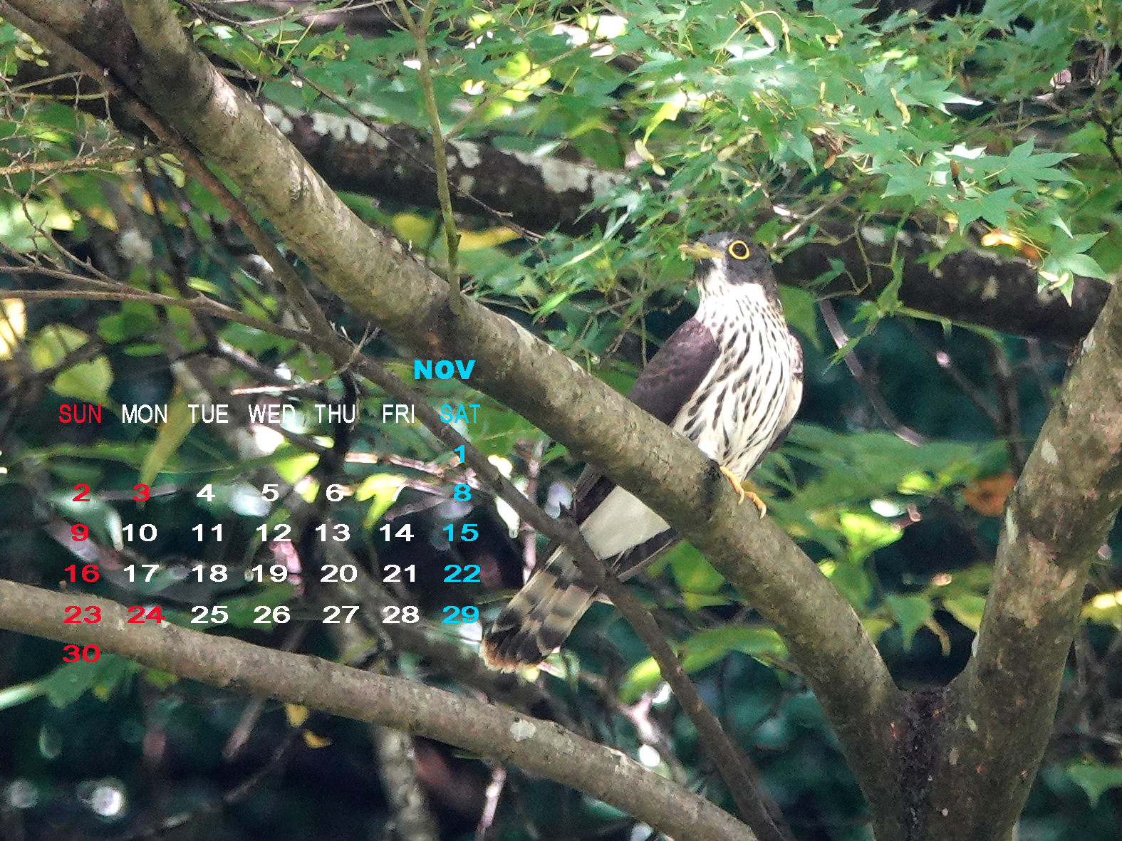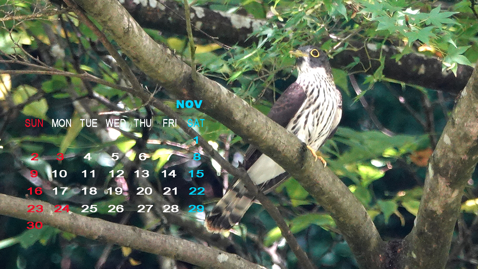 2025年11月のカレンダー(ジュウイチ Rufous Hawk-Cuckoo)配信中 10月25日更新