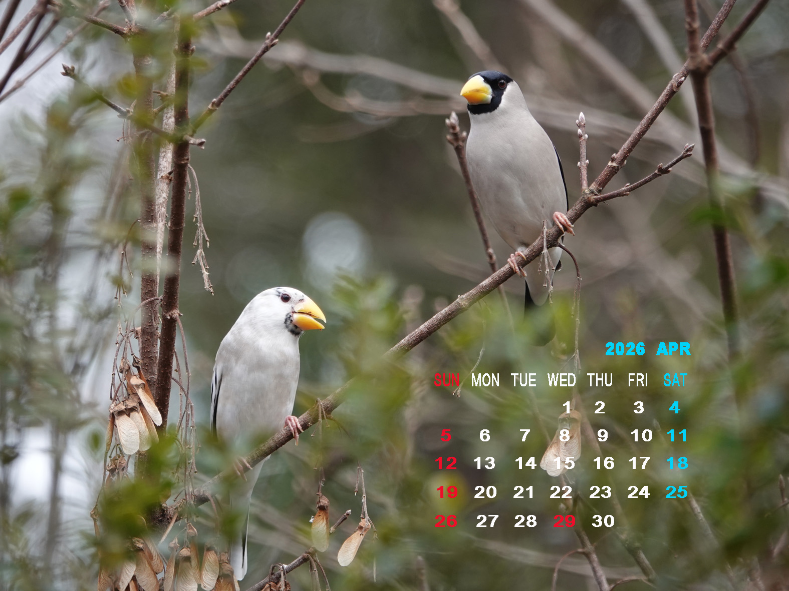 2026年4月のカレンダー(イカル Japanese Grosbeak )配信中